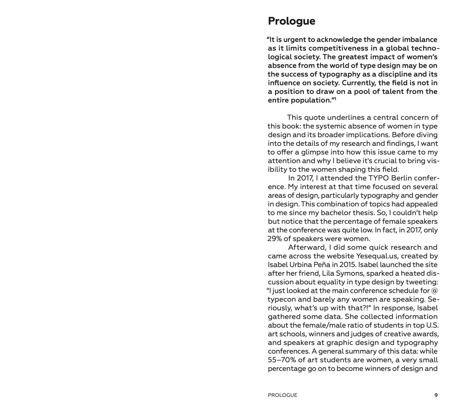First published by Onamotapee in 2021, this important book returns to print with a survey of the past and present of women working in typography. The first section is a statistical overview of the field apropos of gender, supplemented with biographies of female type designers that worked in the 19th and early 20th centuries. These women contributed to the industry significantly, but are rarely mentioned in histories of the subject.
