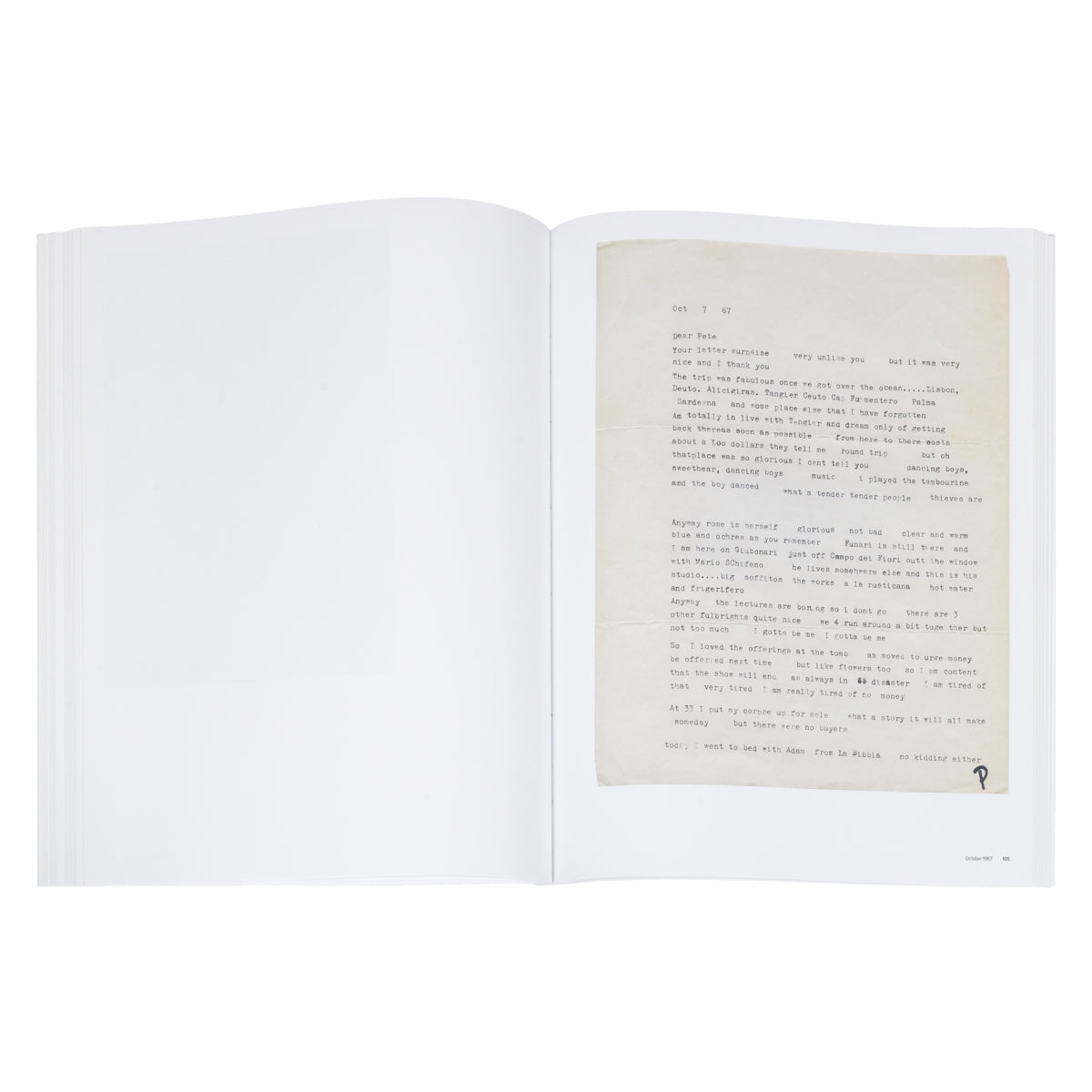 This volume shines a spotlight on the deep relationship between Paul Thek (1933–88) and Peter Hujar (1934–87) through the artists' letters and photographs. The book opens with Hujar's early portraits capturing the beginnings of their relationship, including Thek's first letters to Hujar, written while aboard a containership en route to Europe, where the two would eventually meet in Rome. From there, the publication traces their evolution into the icons we know them as today, with the remaining letters tracing Thek's travels and adventures, romantic dalliances, work and financial ups and downs through 1975.