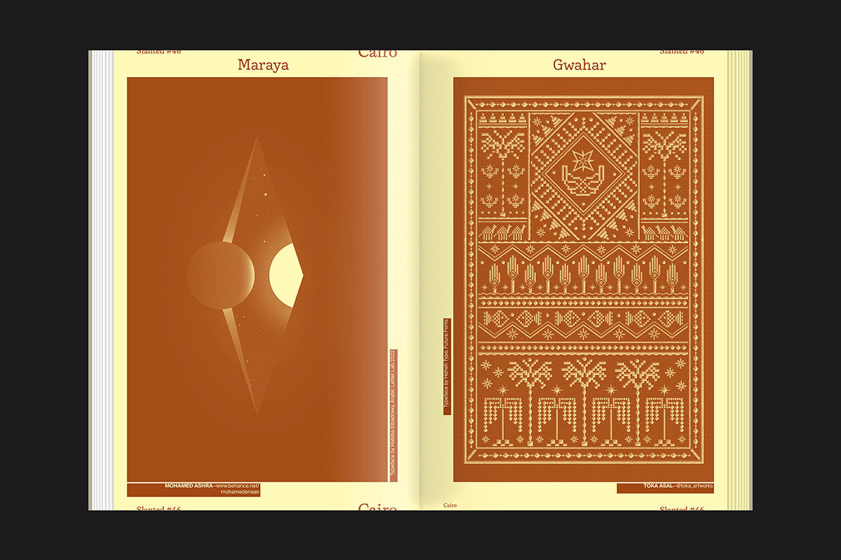 'Slanted 46: Cairo' is a visual journey into Egypt’s vibrant creative scene. The issue highlights the diversity, innovation, and power of Cairo’s design culture and beyond. From graphic design, typography, and visual communication to architecture and product design, it features outstanding projects shaping the region’s cultural present and future. With progressive branding, experimental approaches, and strong visual storytelling, 'Slanted 46' reflects Egypt’s creative energy. Designers, illustrators, and artists from Cairo and beyond share their work and voices. In-depth essays and interviews explore cultural, social, and creative topics, offering a bold, fresh portrait of a design scene in motion.